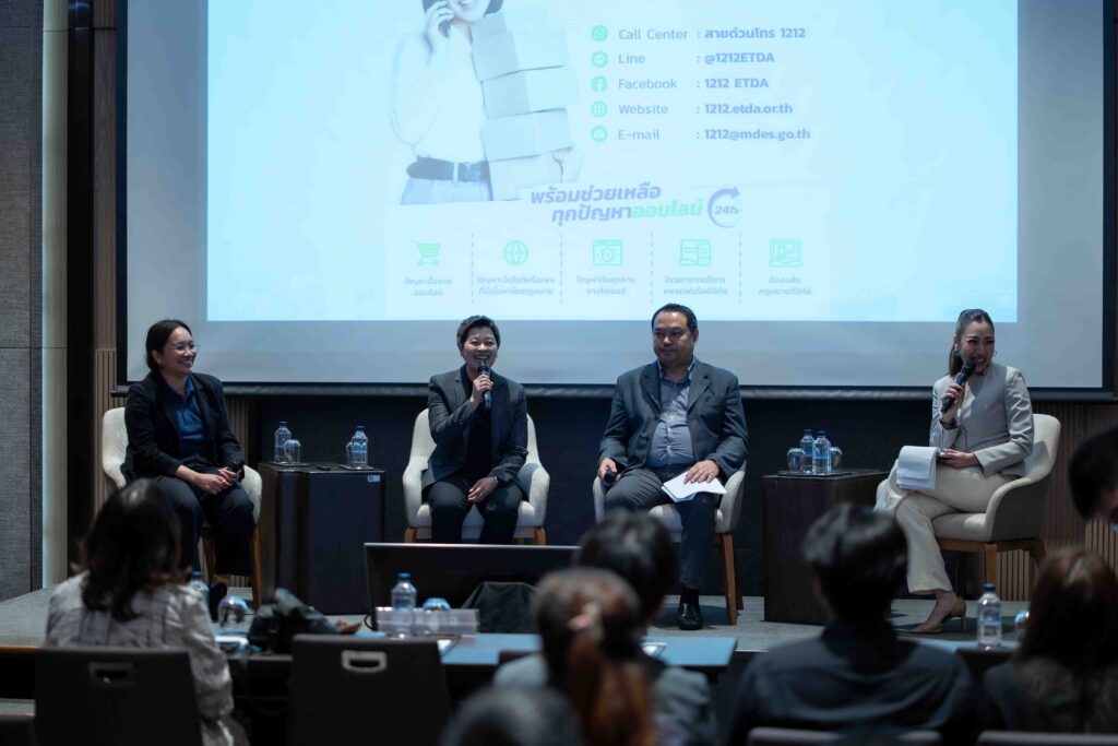 อีกประเด็นหนึ่งที่ผู้ร่วมเสวนาเห็นตรงกันคือ การปรับขึ้นค่าธรรมเนียมหรือเปลี่ยนเงื่อนไขโดยไม่แจ้งล่วงหน้า ไม่ได้กระทบเฉพาะในเชิงต้นทุน แต่ยังกระทบต่อ “ความเชื่อมั่น” ของทั้งระบบด้วย ในมุมของผู้บริโภค ETDA สะท้อนว่า เมื่อราคาหรือค่าบริการปรับเพิ่มขึ้นแบบไม่ชัดเจน ผู้ใช้จำนวนมากจะรู้สึกว่าตนเองถูกเอาเปรียบ หรือบางครั้งอาจถึงขั้นรู้สึกว่า ถูกโกง เพราะไม่เข้าใจที่มาของราคาที่ต้องจ่าย ความไม่ชัดเจนนี้จึงไม่ใช่เรื่องเล็ก แต่เป็นเรื่องของความไว้วางใจต่อบริการดิจิทัลโดยตรง ส่วนฝั่งผู้ขายก็ได้รับผลกระทบเช่นกัน เพราะแม้ต้นตอของต้นทุนที่เพิ่มขึ้นอาจมาจากแพลตฟอร์ม แต่ลูกค้าปลายทางมักมองเห็นแค่ราคาสินค้าที่แพงขึ้น หรือประสบการณ์ใช้งานที่รู้สึกว่าไม่คุ้มค่า สุดท้ายร้านค้าจึงเป็นฝ่ายถูกรีวิวไม่ดี เสียภาพลักษณ์ และอาจสูญเสียลูกค้า โดยเฉพาะผู้ประกอบการรายย่อยที่มีพื้นที่ต่อรองน้อยและความสามารถในการบริหารต้นทุนจำกัด
