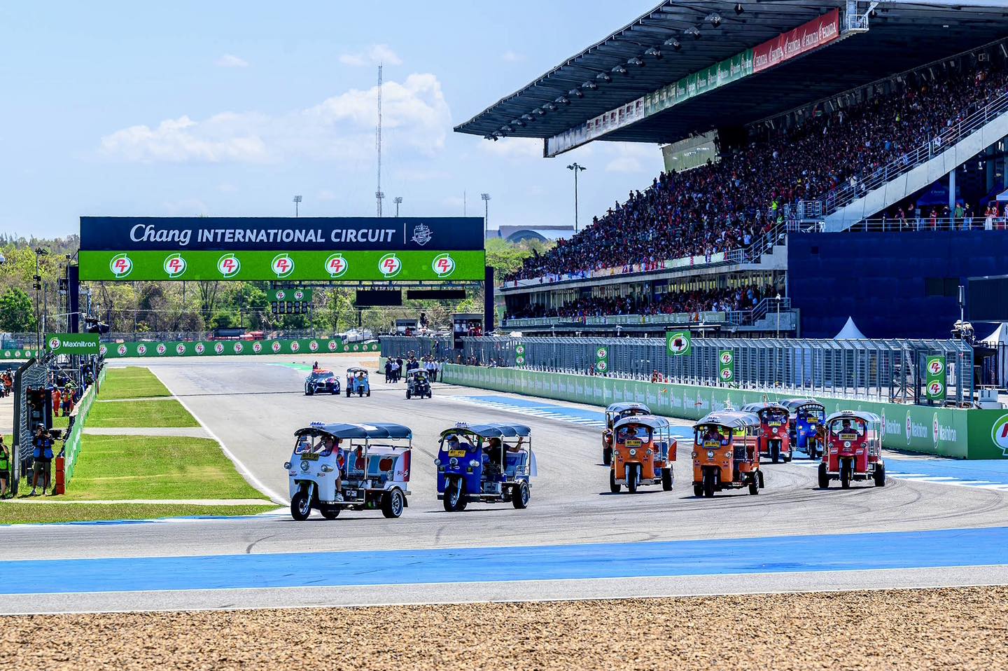 ฉีกทุกกฎการทำ Rider Parade แบบเดิมๆ ครับ! ในศึก PT Grand Prix of Thailand 2026 ฝ่ายจัดงานสร้างเซอร์ไพรส์ด้วยการเปลี่ยนจากรถบรรทุกทักทายแฟนๆ มาเป็นการจับคู่ 22 นักบิดพรีเมียร์คลาสลงควบ “รถตุ๊กตุ๊ก” ดวลความเร็วกันรอบสนามช้าง อินเตอร์เนชั่นแนล เซอร์กิต นำทัพโดยซูเปอร์สตาร์อย่าง Marc Marquez, Pecco Bagnaia และ Jorge Martin ที่สลัดมาดนักบิดสุดขรึมมาสวมวิญญาณสารถีสามล้อเครื่อง เรียกเสียงฮือฮาจากแฟนๆ บนสแตนด์ได้แบบถล่มทลาย