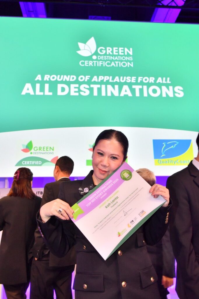 ประเทศไทยสร้างความภาคภูมิใจบนเวทีการท่องเที่ยวระดับโลกอีกครั้ง เมื่อโครงการ “คืนบ้านให้ปูเสฉวน” จากอุทยานแห่งชาติหมู่เกาะลันตา จังหวัดกระบี่ ได้รับรางวัล The Winner – Green Destinations Story Awards 2026 ประเภท Nature & Scenery ภายในงาน ITB Berlin 2026 ณ กรุงเบอร์ลิน สหพันธสาธารณรัฐเยอรมนี โดยมี นางสาวนัทรียา ทวีวงศ์ ปลัดกระทรวงการท่องเที่ยวและกีฬา และประธานกรรมการการท่องเที่ยวแห่งประเทศไทย พร้อมด้วย นางสาวฐาปนีย์ เกียรติไพบูลย์ ผู้ว่าการการท่องเที่ยวแห่งประเทศไทย (ททท.) เป็นผู้แทนประเทศไทยขึ้นรับรางวัล
