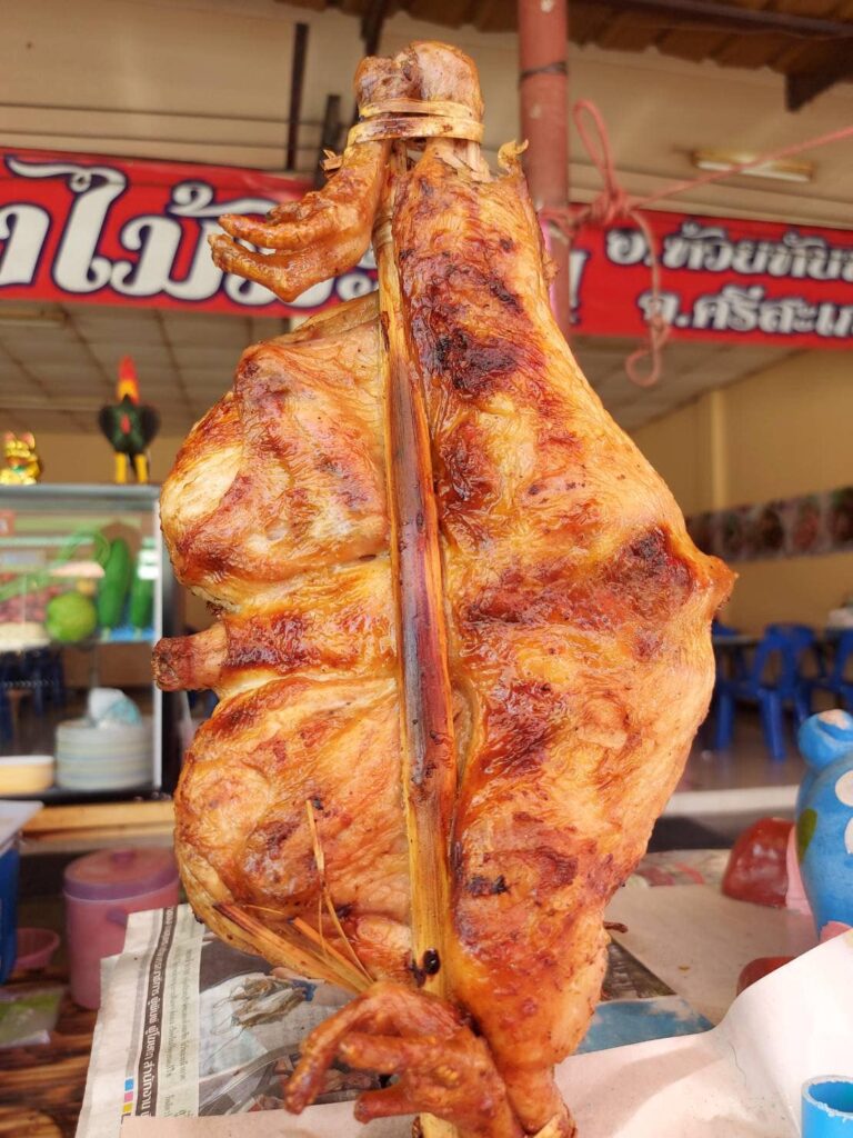 😋 ผิวนอกตัวไก่ย่างได้สีเหลืองสวยงาม ช่วยดับกลิ่นคาวแต่เพิ่มความหอมให้ได้รสชาติที่อร่อยมากขึ้น #ไก่ย่างไม้มะดันศรีสะเกษ