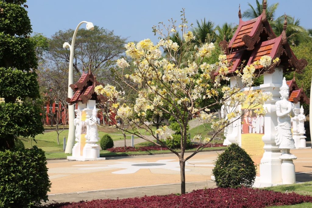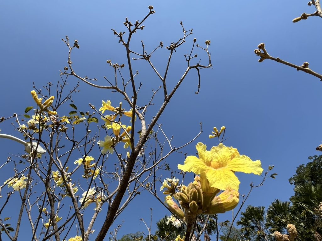ด้วยความโดดเด่นของลำต้นและกิ่งก้านที่ตั้งตรง ช่วยชูให้กลีบดอกบางๆ ไล่เฉดสีเหลืองอ่อนๆ สวยสดุดตามากขึ้น ภายในไม่กี่ปีน่าจะกลายเป็นไม้เอกลักษณ์ที่สำคัญของอุทยานหลวงราชพฤกษ์ได้ตามตั้งใจ เพราะดอกทรัมเป็ตสีเหลือง จะให้ดอกในช่วงกลางถึงปลายเดือนกุมภาพันธ์ต่อเนื่องไปจรดเดือนมีนาคม